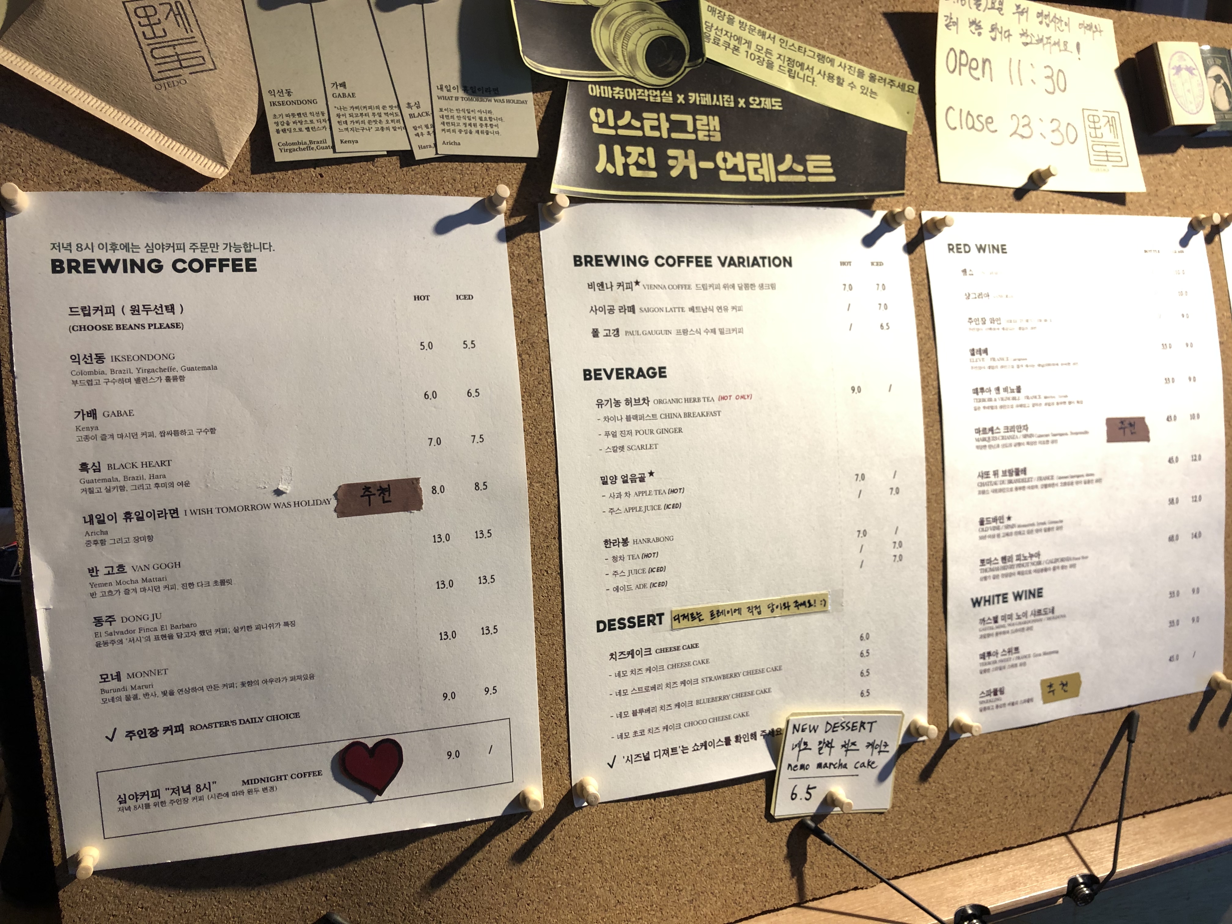 친구는 익선동, 저는 가배 커피를 주문했습니다.